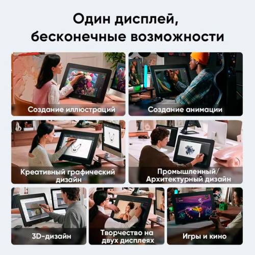 Для підключення можна використовувати порти USB-C та HDMI, з якими графічний планшет перетворюється на монітор для роботи та ігор. Його можна застосовувати із системами Windows, macOS, Android, ChromeOS, Linux та HarmonyOS.
