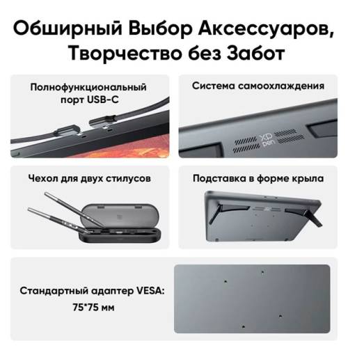 Чіп X3 Pro приносить максимальну плавність введення. Вбудована підставка дозволяє нахиляти планшет від 15 до 88 градусів. Для стілус також є знімна підставка. На планшеті є отвори для кріплення VESA, завдяки якому можна встановлювати його на столах, стінах та важелях.