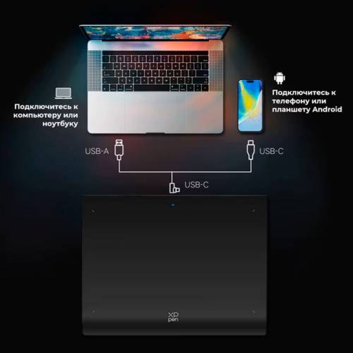 Наявність порту USB-C дозволить швидко підключити планшет до комп'ютерів та ноутбуків, а також використовувати мишу. Для керування доступні два колеса, що обертаються, і 20 клавіш швидкого доступу з можливістю налаштувати їх на свій розсуд.