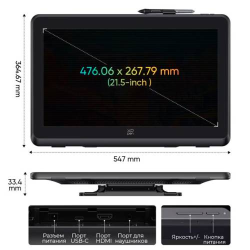 Більш економні покупці можуть віддати перевагу моделі XPPen Artist 22 Plus. Це варіант з діагоналлю екрану 21,5 дюйми, роздільною здатністю 1920 х 1080 пікселів і співвідношенням сторін 16:9 за підтримки 8-бітового кольору.