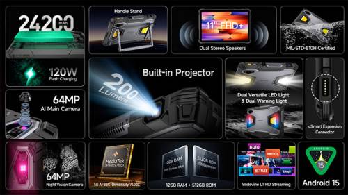 Відома своїми захищеними мобільними пристроями компанія Ulefone анонсувала революційну серію планшетів флагманської категорії — Ulefone Armor Pad 5. Головною в цій серії пристроїв є модель Armor Pad 5 Ultra, яка піднімає планку можливостей захищених планшетів для професійного застосування та серед любителів активного відпочинку. Планшет виділяється наявністю продуктивного вбудованого проектора, преміальним рівнем обчислювальних можливостей та винятковим ступенем надійності. Також для придбання доступний варіант планшета без проектора Armor Pad 5 Pro.
